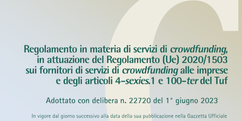 Lo scorso 1 Giugno, Consob, a seguito anche della consultazione del mercato effettuata lo scorso marzo e sentita la Banca d’Italia, ha adottato il Regolamento in materia di servizi crowdfunding per le imprese.