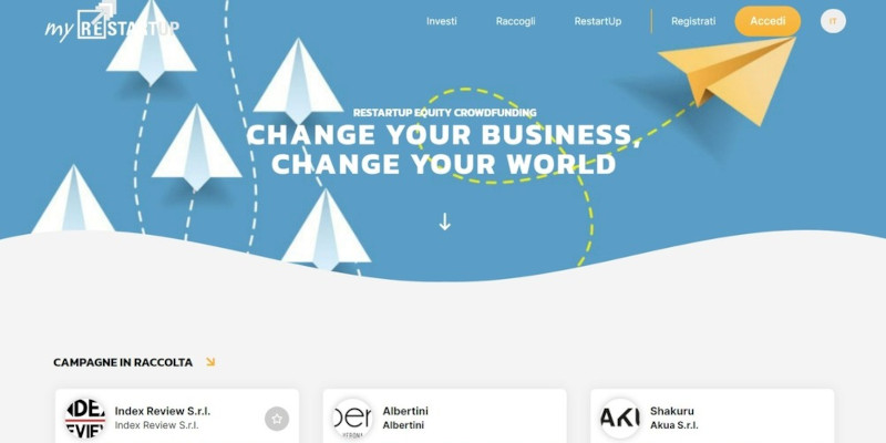 Restartup ha in corso la sua prima campagna di equity crowdfunding: Index Review, fondata nel 1984 da Cesare Cases e Gian Giacomo Migone, che propone una selezione dei libri più significativi pubblicati negli ultimi mesi e articoli di ampio respiro sui temi centrali della vita culturale e civile. Il comitato editoriale è formato da accademici, scrittori, giornalisti e critici.