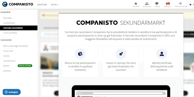 Con la nuova funzionalità, gli utenti della piattaforma hanno quindi l’opportunità di acquistare azioni aziendali da altri Companist o di venderle, in modo sicuro, centralizzato e chiaro. E’ il coronamento di un’istanza espressa in passato da molti “Companist” e che ora è stato realizzato dopo un lungo periodo di sviluppo tecnico.
