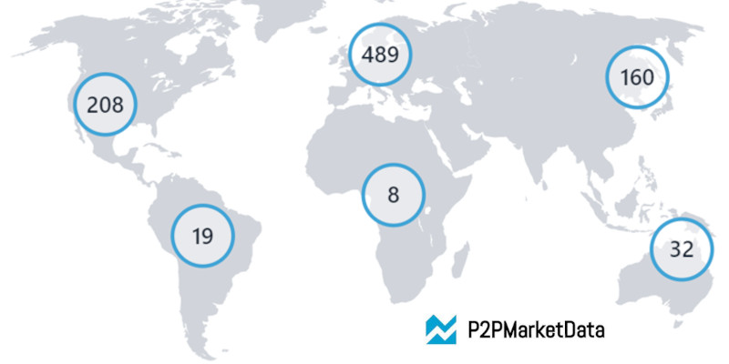 Quasi la metà di tutte le piattaforme di crowdinvesting a livello mondiale incluse nel database di P2pmarketdata ha sede in Europa. Le economie europee grandi e mature tendono ad ospitarne la maggior parte, tra cui Regno Unito (94), Italia (66), Francia (63) e Germania (46).