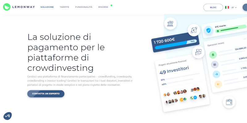 Nel 2020, Lemonway è stata nominata tra le startup FinTech in più rapida crescita (CB Insights 250 FinTech List) e tra le 28 aziende FinTech più promettenti nel settore Payments Processing & Networks a livello globale. L’azienda, nata nel 2007 in Francia, ha 5 sedi e oltre 180 dipendenti. In tutta Europa, oltre 400 marketplace tra cui 200 piattaforme di crowdfunding, e circa 8 milioni di e-wallet, si affidano a Lemonway, per gestire in tutta sicurezza, conformità e semplicità i pagamenti degli investitori, delle piattaforme e delle aziende.