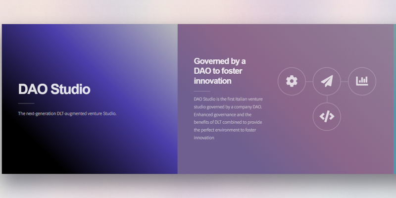 DAO Studio è stata concepita come “Venture Studio”, cogliendo i vantaggi della blockchain per favorire forme di gestione e cooperazione più robuste e interattive rispetto alle forme ordinarie. Proprio la trasparenza e le possibilità di cooperazione offerte dalle DAO rappresentano uno degli asset di DAO Studio.