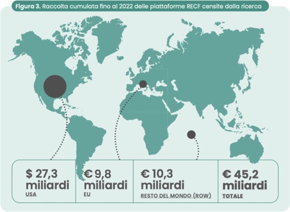 A livello UE, il Real Estate Crowdfunding (RECF) ha raccolto circa € 9,8 miliardi, di cui € 2,8 miliardi nel solo 2022.